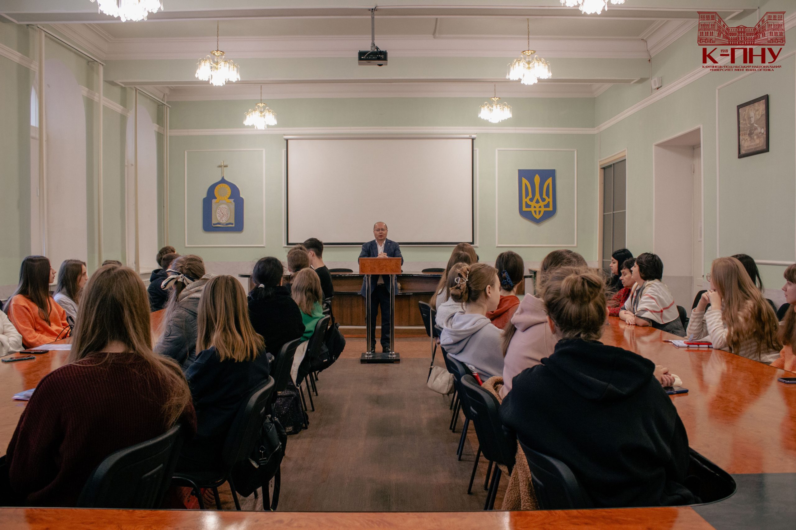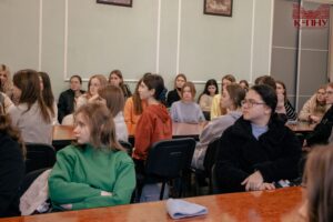 Олександр Борисович розкрив передісторію ухвалення «Цілей сталого розвитку», детально розглянув зміст кожної з них (подолання бідності; подолання голоду; міцне здоров’я; якісна освіта; гендерна рівність; чиста вода та належні санітарні умови; доступна й чиста енергія; гідна праця і економічне зростання; інновації та інфраструктура; зменшення нерівності; сталий розвиток міст і громад; відповідальне споживання; боротьба зі зміною клімату; збереження морських ресурсів; захист екосистем суші; мир та справедливість; партнерство заради сталого розвитку). Викладач охарактеризував головні виклики й шляхи досягнення кожної цілі, підкресливши роль молоді у реалізації цих програм. Він також акцентував увагу на тому, що університет активно підтримує принципи сталого розвитку, забезпечуючи рівний доступ до якісної вищої освіти для всіх студентів незалежно від статі та матеріального становища. Олександр Борисович відзначив, що в університеті панує гендерна рівність, жінки мають рівні права та можливості в навчанні й професійному зростанні, а також створені умови для безпеки, без проявів сексуального насильства чи дискримінації.