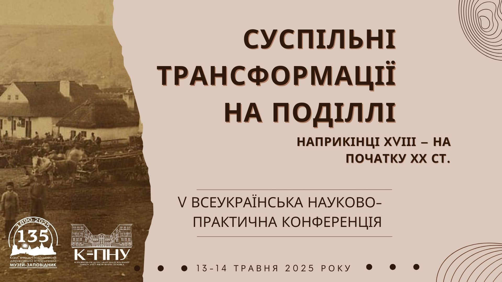 13 травня відбулася V Всеукраїнська науково-практична конференція з міжнародною участю «Суспільні трансформації на Поділлі наприкінці ХVІІІ – на початку ХХ ст.». Співорганізаторами виступили Міністерство освіти і науки України, Кам’янець-Подільська міська рада, Національна академія наук вищої освіти України, Кам’янець-Подільський державний історичний музей-заповідник, Хмельницька обласна організація Національної спілки краєзнавців України, Центр дослідження історії Поділля Інституту історії України НАН України при Кам’янець-Подільському національному університеті імені Івана Огієнка. Конференцію було проведено у міській Ратуші.