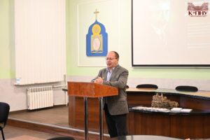 Окремий блок лекції було присвячено ролі Івана Огієнка як першого ректора Кам’янець-Подільського державного українського університету. Саме завдяки його організаторському таланту, управлінському досвіду й особистій жертовності університет був відкритий у 1918 році та зміг функціювати в надзвичайно складних політичних і воєнних умовах. Лектор підкреслив, що Огієнко не лише формував професорсько-викладацький склад і матеріальну базу вишу, а й дбав про соціальний захист студентства, розвиток науки, бібліотеки, видавничої справи та громадсько-просвітницької діяльності.