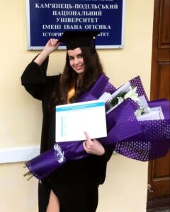 випускниця 2019 року спеціальності 032 Історія та археологія ступеня вищої освіти «магістр». Вчитель Кам’янець-Подільського ліцею №10.