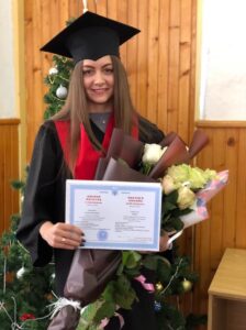 випускниця 2022 року спеціальності 032 Історія та археологія ступеня вищої освіти «магістр». Отримала диплом магістра з відзнакою. Учасниця міжнародної академічної мобільності у межах Національної стипендійної програми Словацької Республіки (філософський факультет Католицького університету, м. Рожумберок) (вересень 2021 р. – лютий 2022 р.). Підсумком роботи стало магістерське дослідження на тему «Українсько-словацькі відносини 2004-2022 рр.», яке було успішно захищене у грудні 2022 р.
